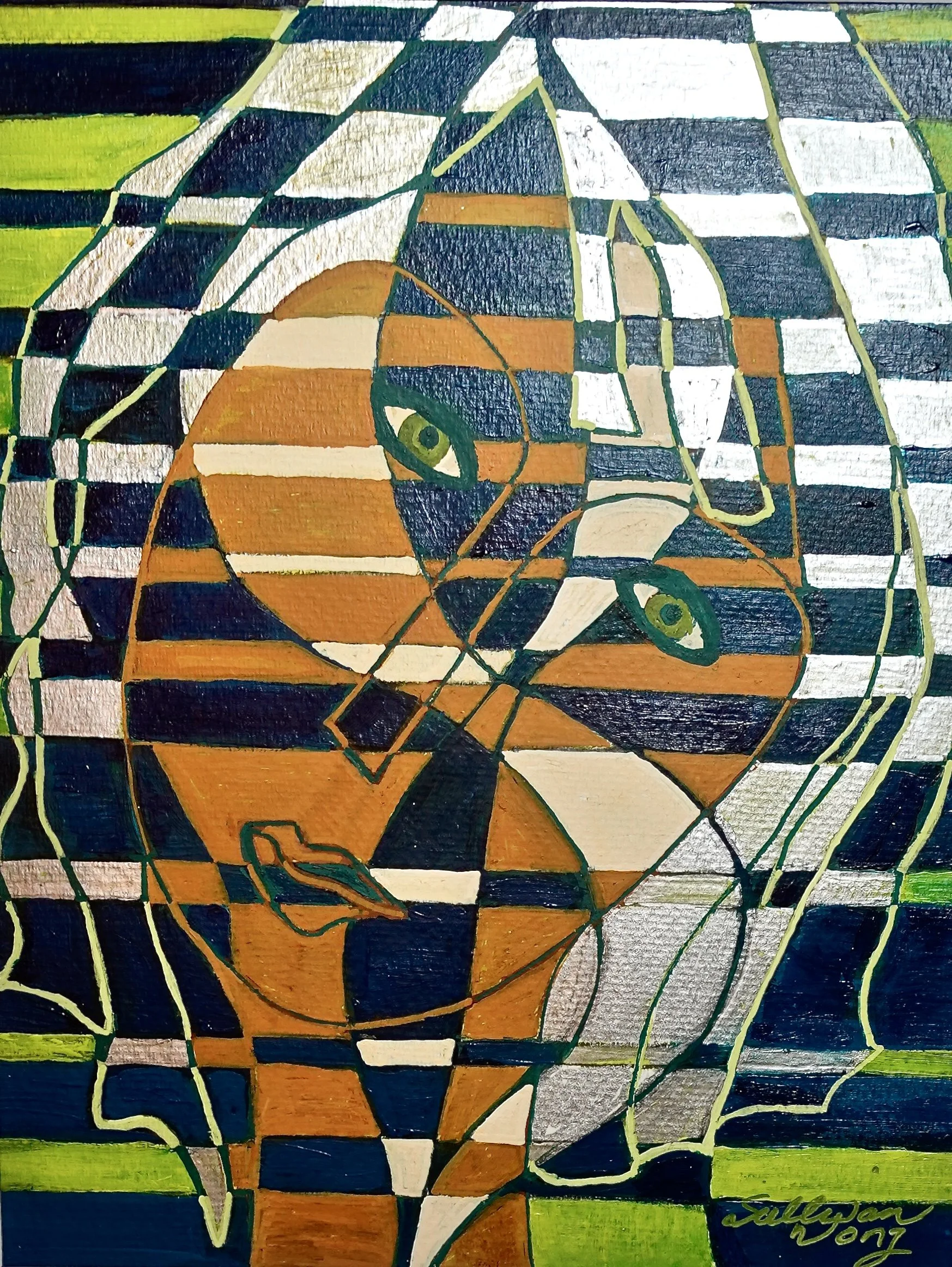 “Linear Self Portrait” Acrylic on Watercolour Paper 9.5” by 7.5”
