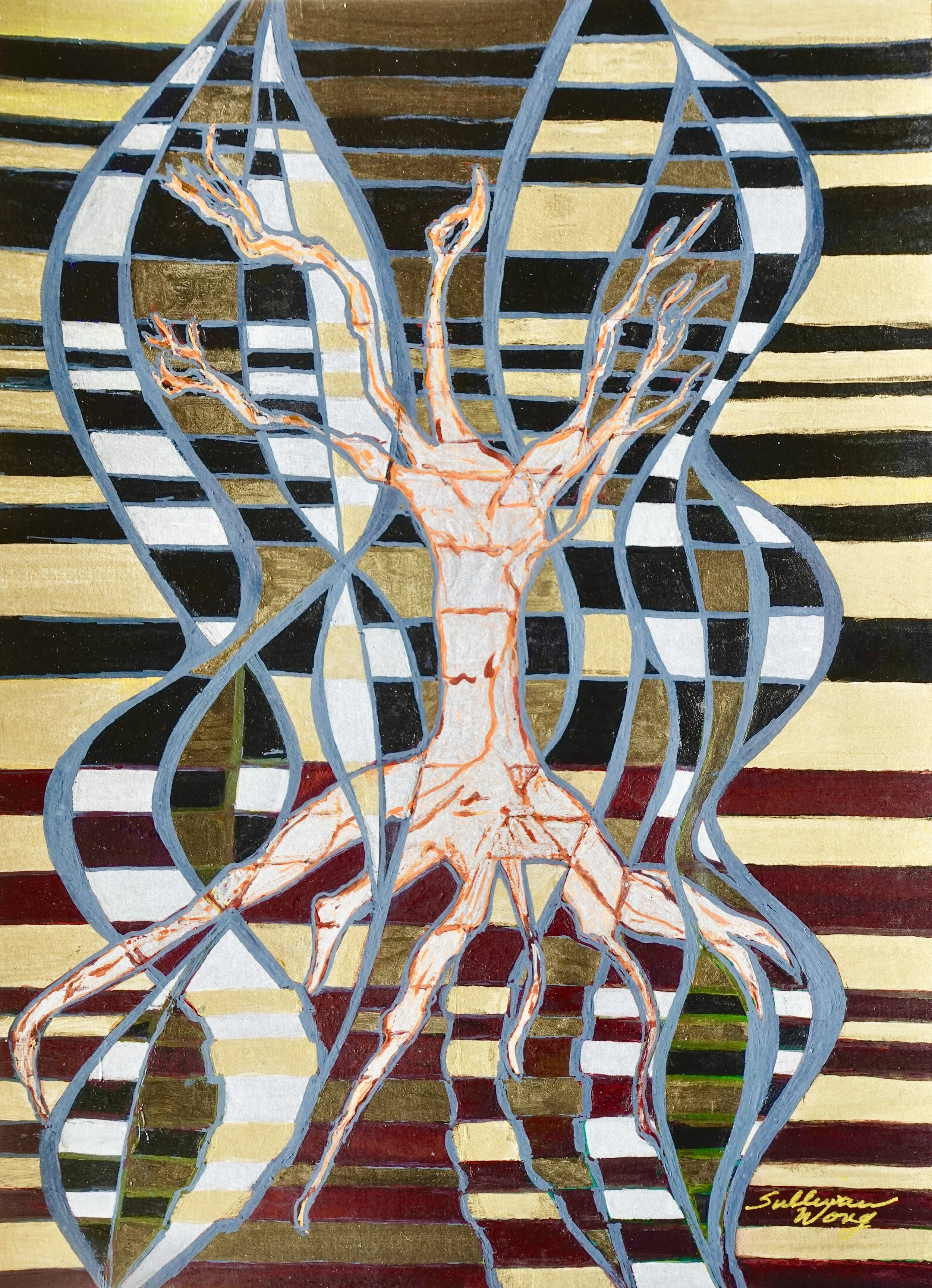 “Weaving Gold & Silver” Acrylic/Oil on Watercolour Paper 15” by 11” Private Collection